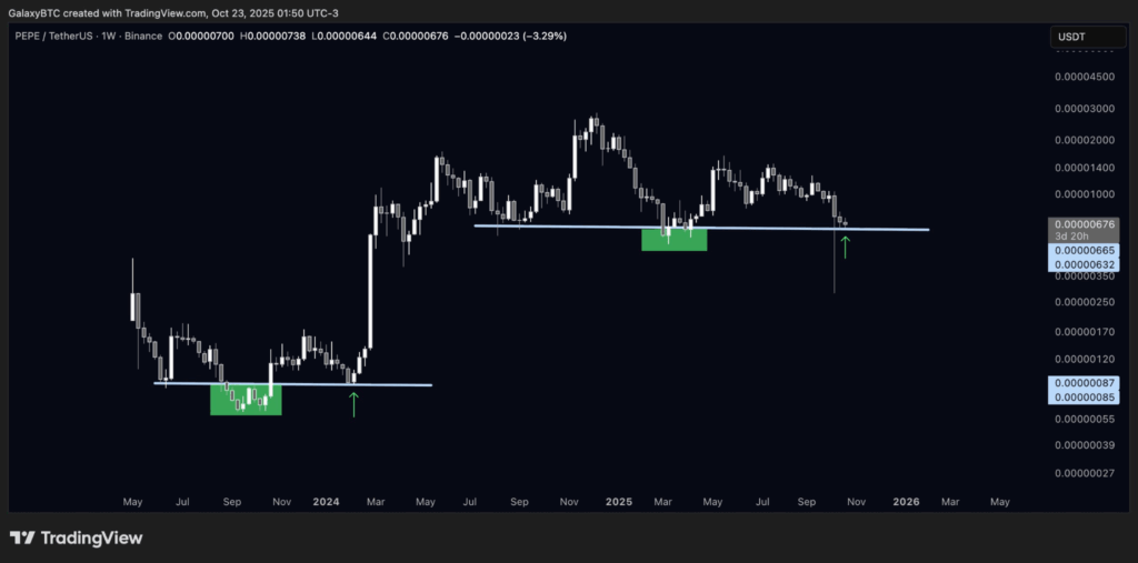 According to analyst Galaxy is pointing out that PEPE appears to be forming an inverse head and shoulders pattern on the weekly chart.