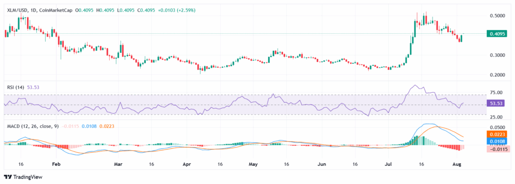 Stellar (XLM) stole the market’s attention today with a 10% surge in just one day. This price action placed it firmly in the top three gainers.