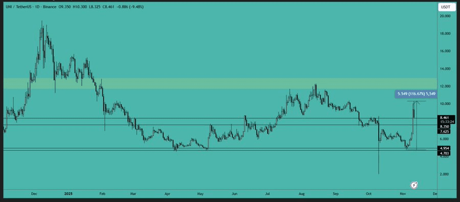 Despite the pullback, analyst Crypto VIP Signal has highlighted that the UNI rally is picking up, saying that their long position has returned a profit of more than 116% since the time of entry.
