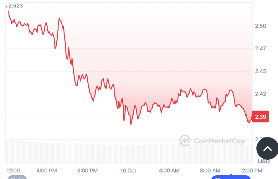 At the time of writing, XRP was trading at $2.39, representing a 4.83% decrease.